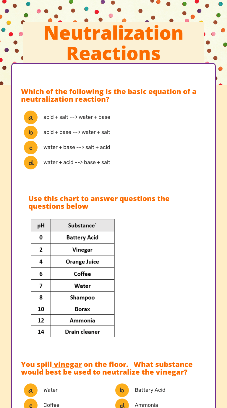 Neutralization Reactions Worksheet : Topic 8 Worksheet 10 5 Answers Cglass St Mary S Springs Academy :
